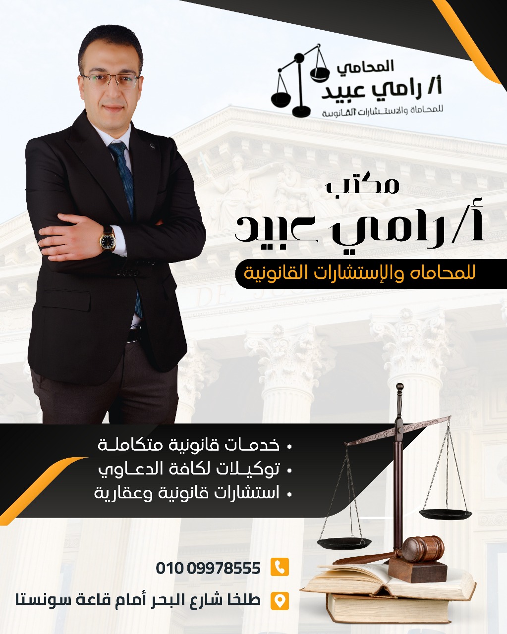 مكتب الأستاذ / رامي عبيد – المحامي بالاستئناف العالي ومجلس الدولة ⚖️